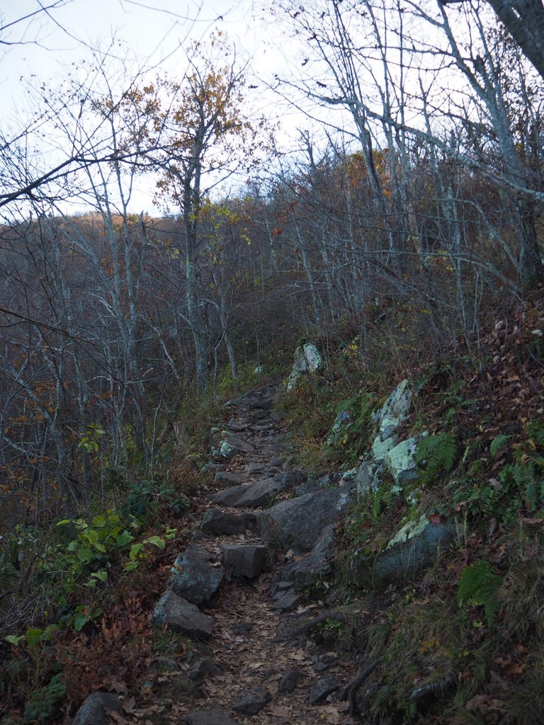 I found myself breathing hard, sweat rolling off my brow, down my face and into my beard. The sun would be setting soon. Already the shadow of the ridge had cut across the hills and meadows to the east. Those shining white towns that thread their way along the Shenandoah River Valley. The path ahead had been built by out of work young men nearly a hundred years ago. Stairsteps and walls built from locally quarried stone that I had thought only climbed a few hundred yards to the ridge of Panorama overlook in Shenandoah National Park.